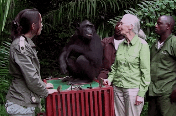 很偶然的机会,她认识了当时著名的古人类学家,路易·利基,就是那个发现了“能人”头骨的科学家。他正在招募愿意前往非洲丛林观察黑猩猩的调研员。希望由此探索远古人类群居的社会进化。珍获得了这份工作,并前往坦桑尼亚西北部的贡贝。她和黑猩猩的缘分就此注定。